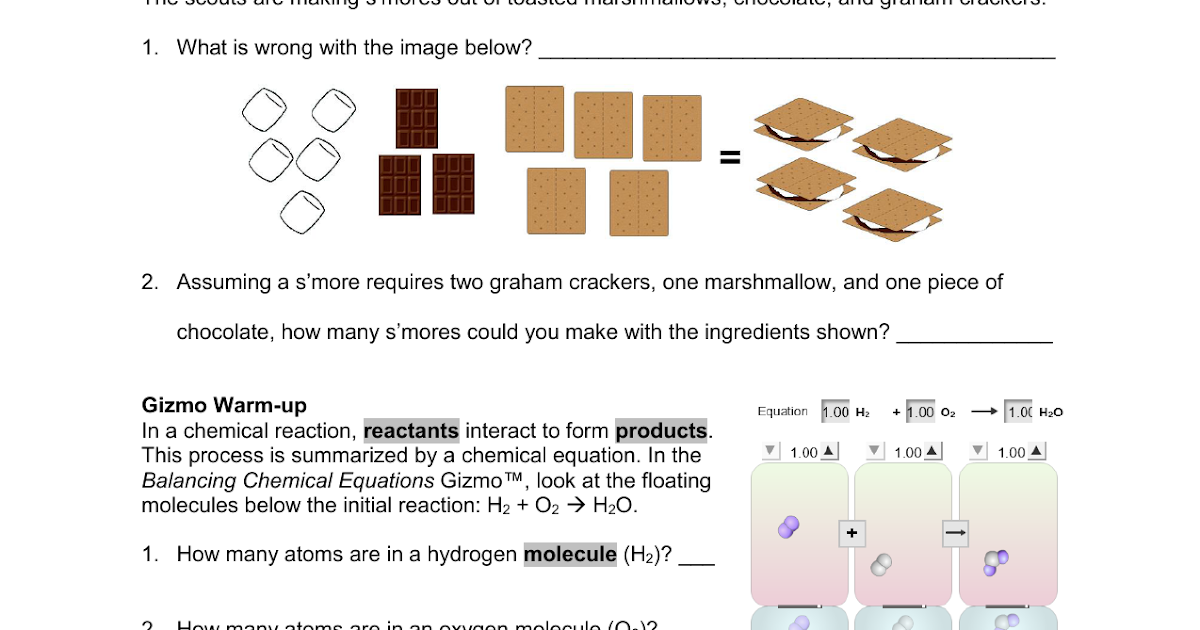 Balancing Chemical Equations Gizmo Answer Key - Student Exploration Balancing Chemical Equations Gizmo ... / In the balancing chemical equations gizmotm, look at the floating molecules below the initial reaction: